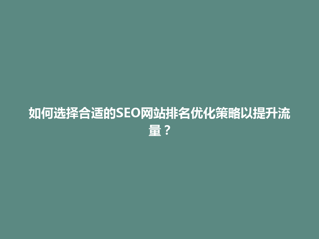 长寿区如何选择合适的SEO网站排名优化策略以提升流量?